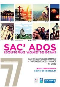 Vous avez entre 16 et 23 ans et souhaitez partir en vacances cet été de façon autonome ? Randonnée ou détente, escalade ou découverte du patrimoine culturel ; ville, plage ou montagne : France ou Europe : le dispositif “Sac’ Ados”, mis en place par le Conseil général de Seine-et-Marne, peut vous aider quelles que soient vos envies de vacances.