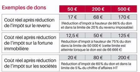 —> En faisant un don je bénéficie d’une déduction fiscale automatique sur mon impôt sur le revenu, sur mon impôt sur la fortune immobilière ou sur l’impôt sur les sociétés :