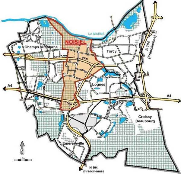 Avec le concours du Syndicat d'agglomération nouvelle (San), téléchargez le plan de Noisiel et de son l'agglomération.