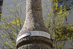 - Relevez de préférence le numéro du candélabre indiqué sur le cerclage installé sur le mat ou sa localisation s’il n’est pas numéroté.