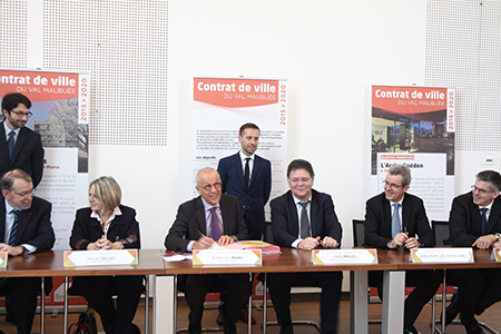 ArticleRenouvellement urbain aux Deux-Parc / Luzard : une nouvelle étape franchieLundi 21 décembre a été signé à l’Hôtel d’agglomération du Val Maubuée, le protocole de préfiguration des projets de renouvellement urbain, dont celui de Noisiel, en présence du Préfet de Seine-et-Marne, du Président de l’Agglomération, des maires des communes concernées, du directeur général d’EpaMarne ainsi que des bailleurs sociaux. |centerLes quartiers des Deux-Parcs / Luzard (communes de Champs-sur-Marne et de Noisiel) a en effet été retenu parmi la liste des quartiers prioritaires pouvant faire l’objet de cofinancement par l’ANRU, dans le cadre du Nouveau Programme National de Renouvellement Urbain, au titre de l’intérêt régional. Dans ce contexte, le protocole de préfiguration constitue la première étape de contractualisation du projet de renouvellement urbain porté par l’Agglomération. Destiné à financer un programme d’études et des moyens d’ingénierie, il doit permettre de concevoir des projets urbains de qualité et de définir les conditions de leur faisabilité et de leur réalisation. Le protocole de préfiguration des projets de renouvellement des Deux Parcs et de l’Arche Guédon s’inscrit dans la continuité du contrat de ville signé le 10 septembre dernier. Pour Nicolas Delaunay, vice-président chargé du renouvellement urbain, de la politique de la ville et des transports, « c’est une étape décisive qui est franchie sur le chemin du renouveau des quartiers. » Il précise notamment :