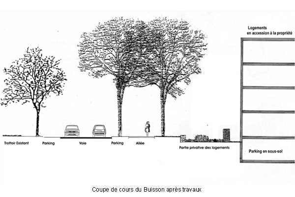 Le tracé du Cours du Buisson a été redessiné pour former une ligne droite et aboutir