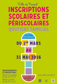 Les inscriptions scolaires concernent les enfants qui fréquenteront pour la première fois une école de Noisiel en septembre 2016.