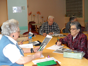 Encadrés par deux écrivains de l’association “Par mots et par lettres”, ces ateliers de deux heures ouvrent de nouvelles perspectives d’expression, de travail d’imagination, de transmission d’une mémoire individuelle ou collective aux personnes retraitées qui le désirent, tout en leur offrant une activité leur permettant de rompre l’isolement. « Les participants sont invités à écrire sur une variété de thèmes choisis en commun, explique les intervenants. Pour favoriser ce travail créatif, nous prenons appui sur des supports tels que photos, cartes postales, objets familiers, mots du vécu, chansons, textes littéraires, en vue d’apporter du vocabulaire et de stimuler la mémoire et la fantaisie. Les écrits produits prendront des formes variées, des plus simples, telles qu’acrostiches, paniers de mots, inventaires, abécédaires, aux plus élaborées, mais toujours à la portée de tous, telles que récits personnels ou collectifs, articles, petits ouvrages, affiches. Il ne s’agit pas de consommer du loisir, mais bien d’être acteur ».